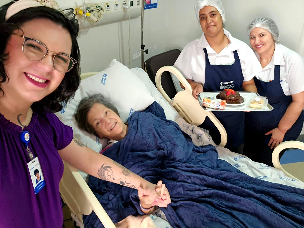 Gestos simples que ajudam na recuperação: paciente de 90 anos ganha bolo e salada
